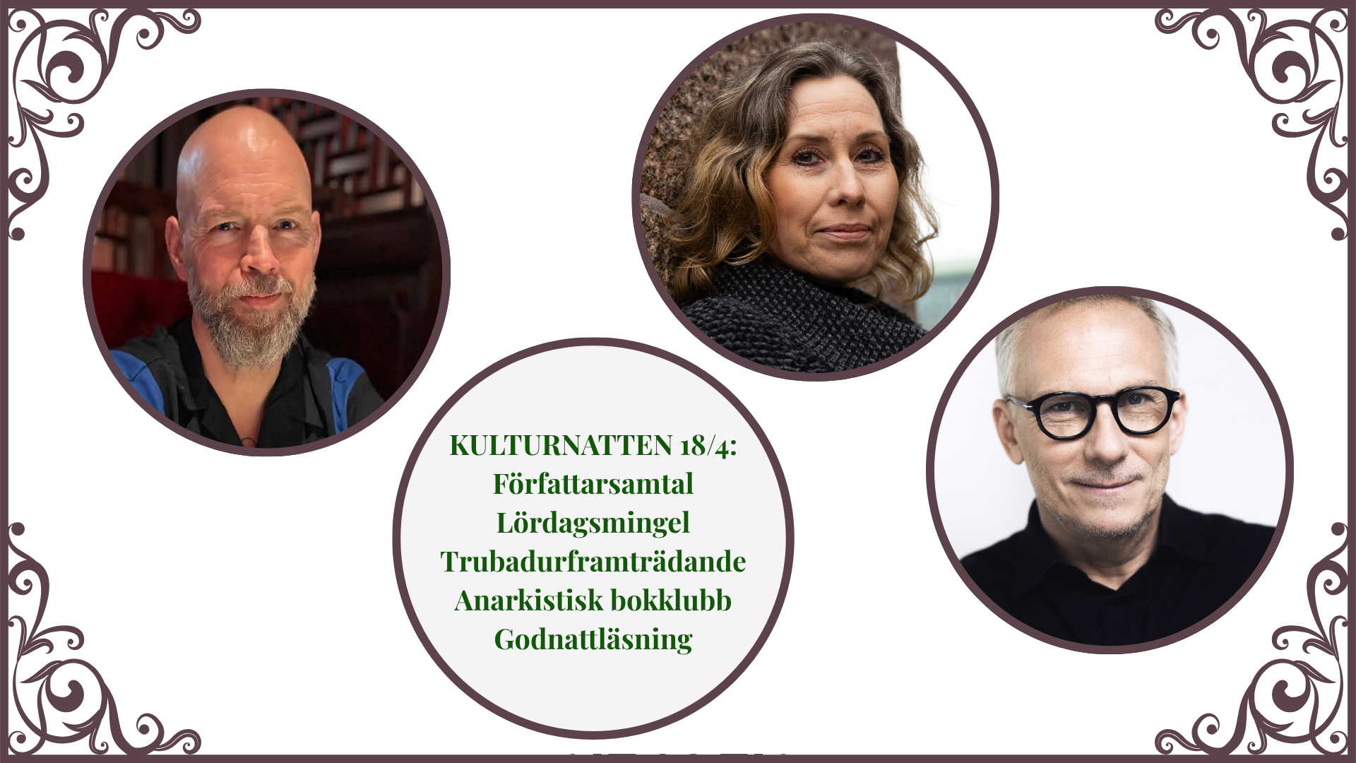 Tre glas. Tre berättelser. Följ med på en smak- och läsresa med italienskt tema där rödvinets djup matchar kriminalromanen. I biljetten ingår en (valfri) bok av de presenterade titlarna, utöver upplevelsen av samtalet, vinet och stämningen. Kvällen bjuder dessutom på en överraskning, och vid resans slutdestination får du 10% rabatt på bokhandelns hela sortiment.