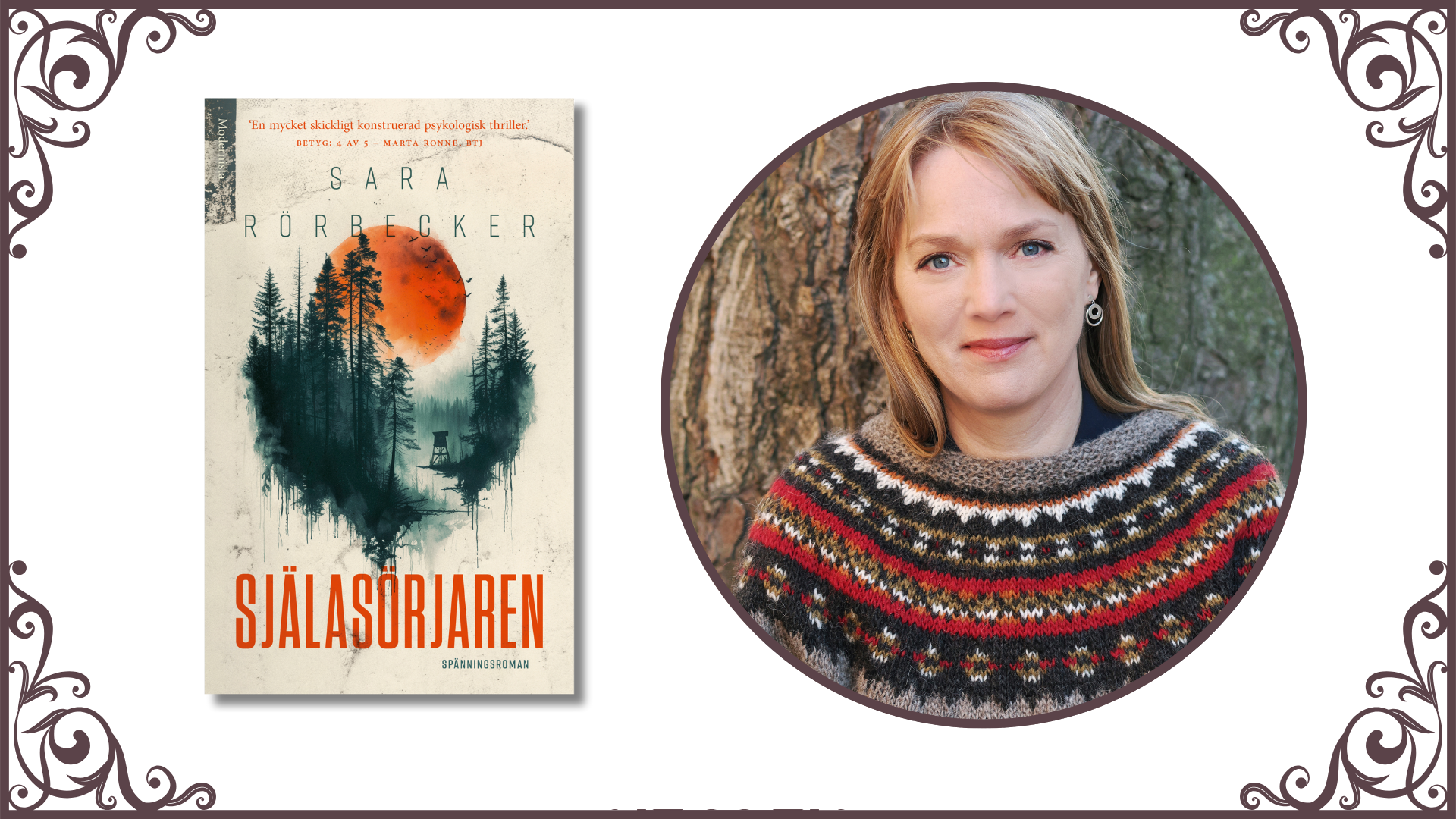Välkommen 13:00 att lyssna till och samtala med Sara Rörbecker, aktuell med hyllade spänningsdebuten Själasörjaren om prästen Anna som efter ett kraschat förhållande söker sig tillbaka till sin barndoms Småland för att börja om. Hon påbörjar flytten till en gammal prästgård utanför Askeryd, men innan flyttlasset ens hunnit fram skakas det lilla samhället av en tragedi: en liten flicka, Emmy-Lo, har försvunnit spårlöst i de mörka skogarna ...